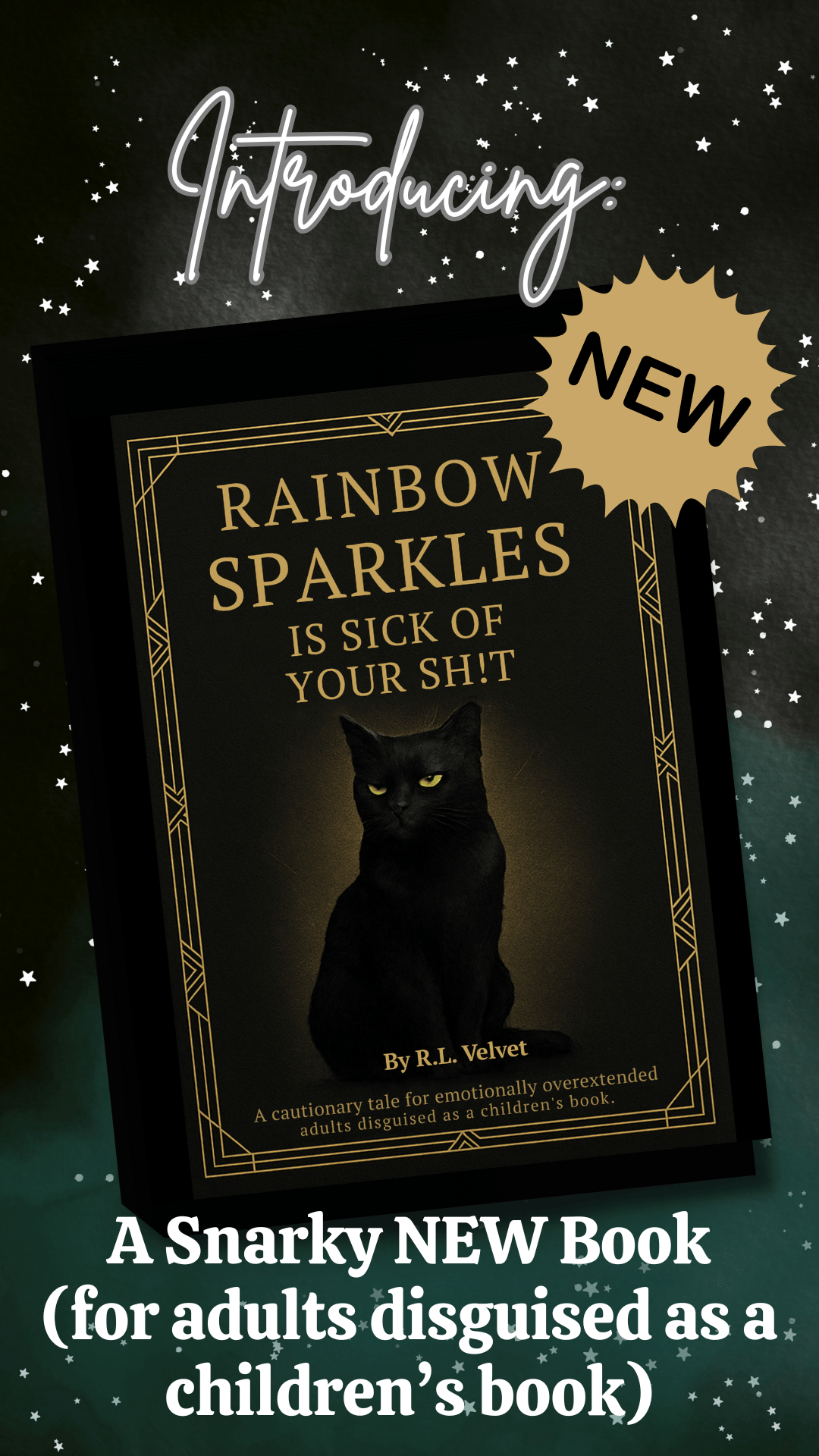 Meet Rainbow Sparkles — the midnight-black feline with bright green eyes, passive-aggressive perfection, and zero tolerance for your drama. This isn’t a children’s book. It just looks like one. Inside? It’s all claws and catharsis.