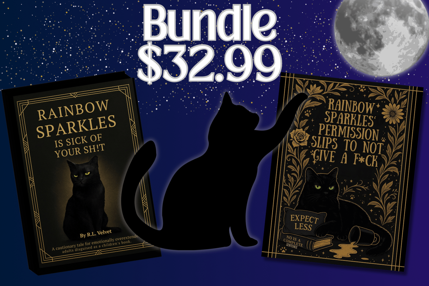 ≽^• ˕ • ྀི≼This bundle includes both painfully relatable, gloriously inappropriate Rainbow Sparkles paperbacks—because sometimes, healing looks like coloring outside the lines while swearing under your breath. Why choose between "Rainbow Sparkles Is Sick of Your Sh!t" and "Rainbow Sparkles’ Permission Slips to Not Give a F#ck" when you can have both?